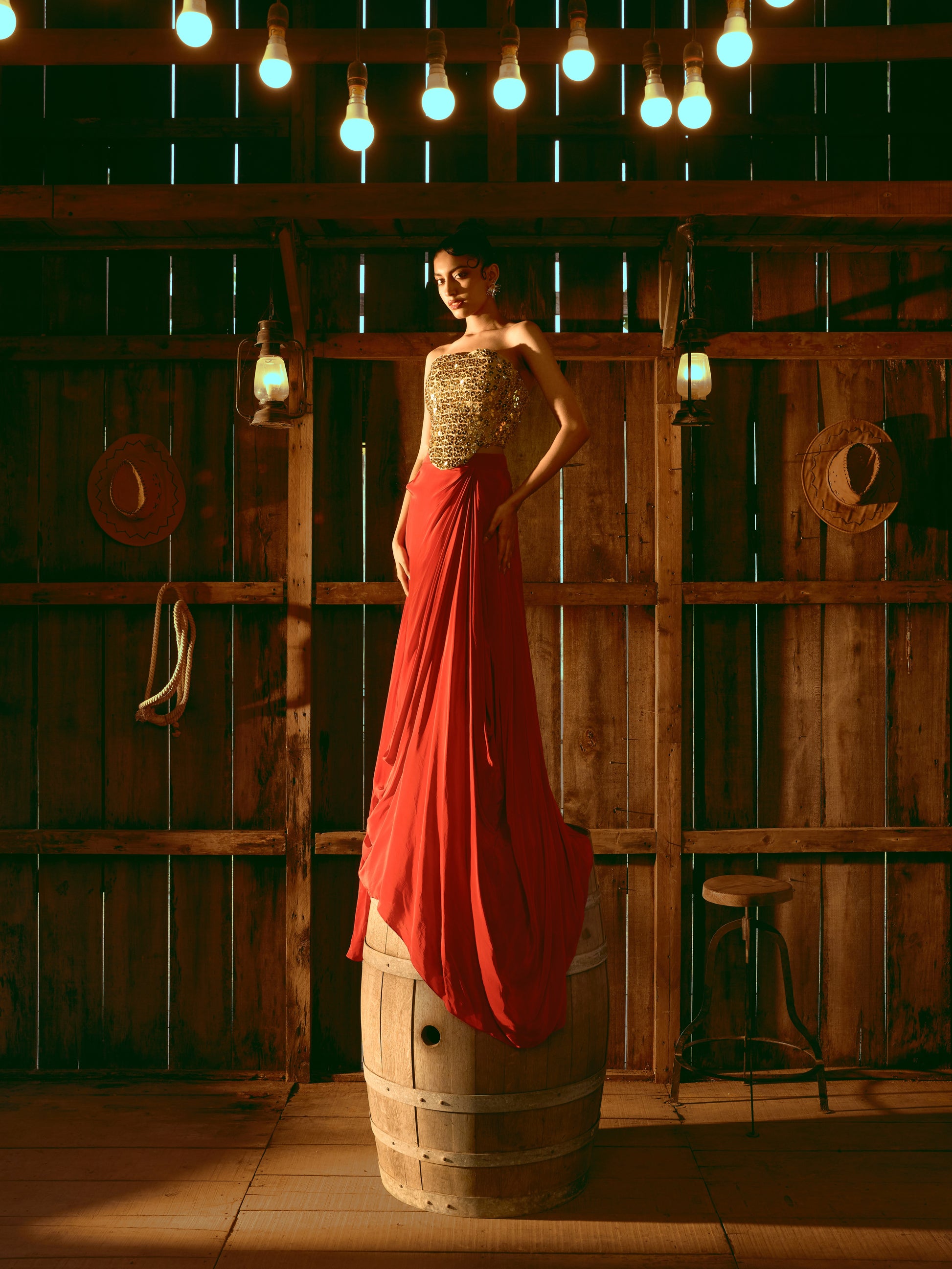 The Queen of Hearts corset gleams with signature mirrored hearts, each reflecting a different shade of love — fierce, chaotic, kind. Draped in a scarlet red skirt that flows like a heartbeat set free, she embodies romance with rebellion. She is the pause between a sigh and a stare.